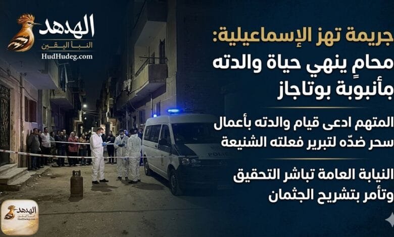 جريمة تهز الإسماعيلية.. محامٍ ينهي حياة والدته بأنبوبة بوتاجاز
